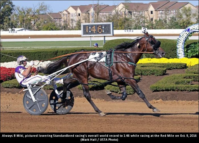 Always B Miki, who was twice sidelined by injuries that forced him to miss the end of his three-year-old season and the majority of his four-year-old campaign, paced the fastest mile in harness racing history on October 9 at Lexington’s Red Mile when he won the Allerage Open Pace in 1:46.