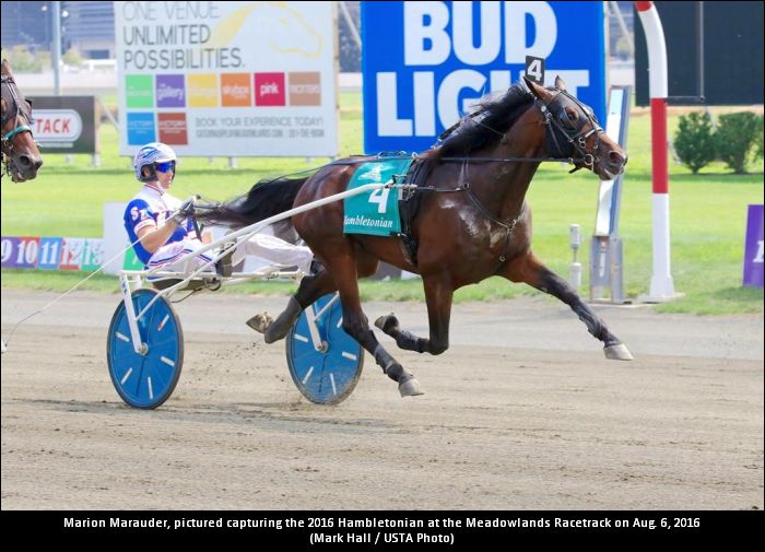 Marion Marauder, who was named the sport’s best three-year-old male trotter in the U.S. last Thursday, was the first Trotting Triple Crown winner since 2006, as he swept the Hambletonian, Yonkers Trot, and Kentucky Futurity. In addition, he won the Goodtimes Stakes and a division of the Stanley Dancer Memorial on his way to $1.55 million in purses. His earnings led all trotters in North America.