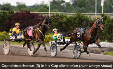 See And Ski (Scott Zeron) was the first to fire from post four in the opening Cup elimination, but Captaintreacherous and driver Tim Tetrick rolled up after leaving to his outside and cleared to command past the :26.3 opening quarter.