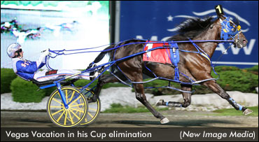 The final elimination went to the popular Vegas Vacation, who continued his undefeated sophomore win streak with a 1:49 victory for driver Scott Zeron and trainer Casie Coleman.