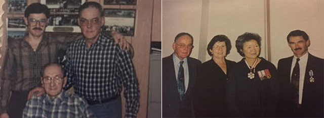 Left: Three generations of the Campbell clan. On the right John's parents Jack and Florence join Rt. Honourable Adrienne Clarkson and John as he receives the Meritorious Service Medal of Canada
