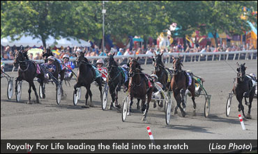 After overcoming an outside post position to win the fastest of three $70,000 elimination heats earlier in the day in 1:52 flat, Royalty For Life returned to take the final of the 88th edition of the trotting classic in 1:52.1 for driver Brian Sears and trainer George Ducharme.
