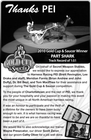 After finishing second in the Gold Cup & Saucer with Secret Weapon in 2009, Jim Lehman was floored by the Island hospitality offered to him by PEI's harness racing community