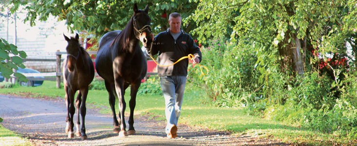 Heureusement pour le nombre sans cesse croissant de ces jeunes rebelles du programme, McGuigan dispose de quelques poulinières prêtes à offrir un soutien silencieux et sans jugement à sa ferme de Mount Herbert. « Ce n’est pas une grosse ferme. Elle ne fait que quelque quatre acres en périphérie de la ville, et nous avons deux poulinières. Ce n’est pas un grand espace, mais il nous convient parfaitement, » dit l’adjoint au chef de police à propos de son domicile familial, où, chaque saison, deux jeunes contrevenants se voient proposer une alternative positive. « Nous assignons aux enfants un cheval avec lequel ils travailleront. Nous les accueillons six ou sept semaines avant la date de mise bas de la jument et les laissons travailler auprès d’elle et bâtir un lien avec elle. Nous leur enseignons les rudiments des soins à prodiguer aux chevaux de même que quelques conseils sur le rôle de palefrenier, et nous leur disons aussi ce qu’ils doivent surveiller quand la jument montrera des signes que la date de mise bas approche. »