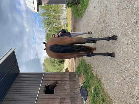 Yearling Wheeling N Dealin filly out of Donerail mare. Well put together filly. Good attitude. All trot. She does have a minor field split on front right, has never affected her. If I had more time I would be keeping her myself. Located in Rockwood and available for viewing.