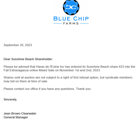 Ownership Syndicate is Blue Chip Farms, Wallkill, NY.