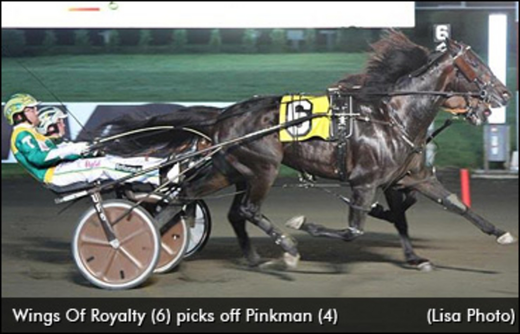 When trotter Wings Of Royalty was preparing for this season, trainer George Ducharme thought the four-year-old was acting better than at any time during his previous two campaigns. After watching the stallion nip multiple-award-winner Pinkman by a nose last Friday at the Meadowlands Racetrack, Ducharme is starting to think it is more than just an act.