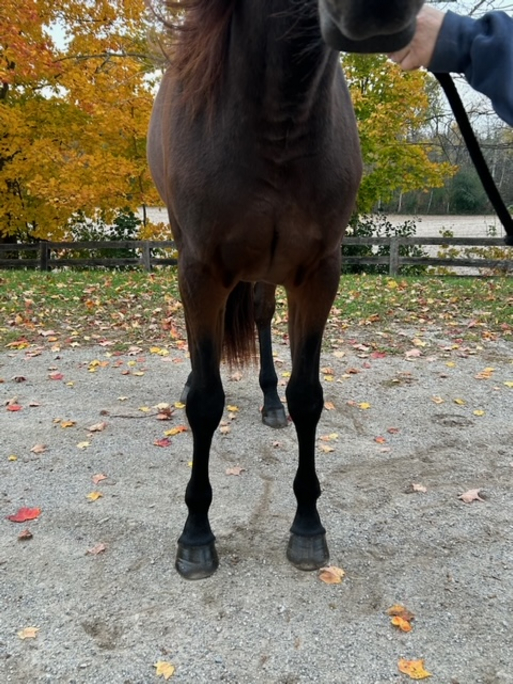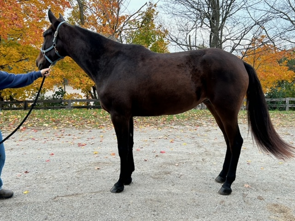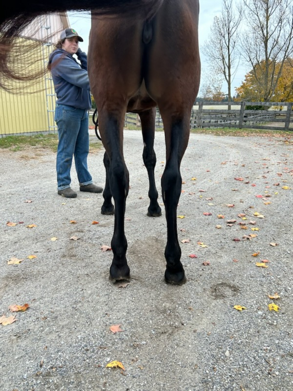 This filly trained down with Victor Puddy. She went a mile in 2:20 in the jogger over Manestreet Training Center on June 1/23. We felt it was best to turn her out at that time to mature. She's been on grass all summer and she has grown and filled out considerably. Just started back jogging this week. Excellent manners and a pleasure to jog and have in the barn. Connections are looking to raise capital for the yearling market.