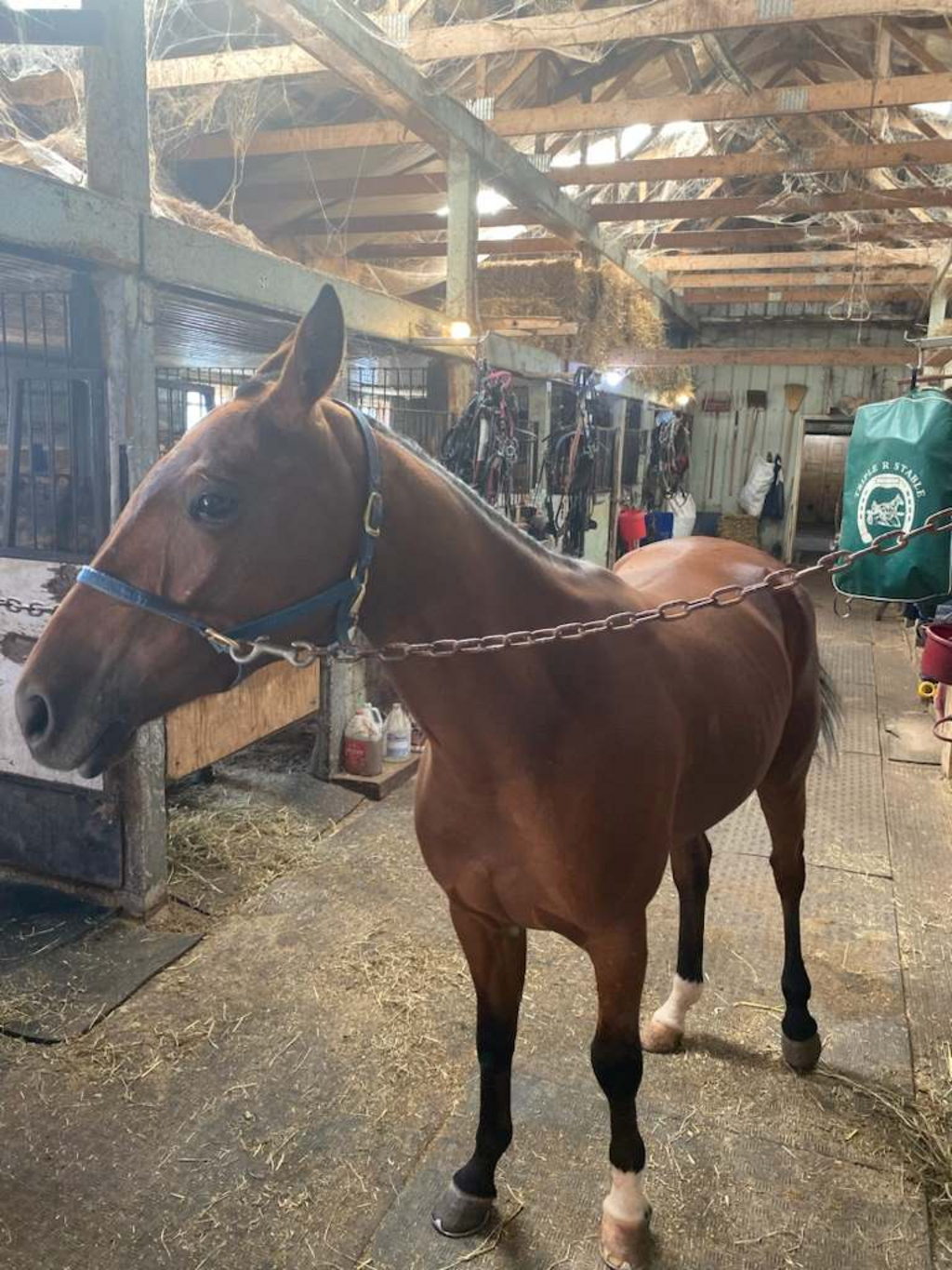 Green 3 y.o. filly, won her 1st start like a real racehorse, went to front and put away all comers. Developed sore mouth and took 3-4 starts to get her straightened out then she tied up on Aug. 19th. Ready to put in box, paid up to all PEI stakes, racing on Regumate, 100% sound, would be better off at track where she doesn't have to go in 1:57 until she learns to race. Would like to give her a chance, but not behind a buggy !!