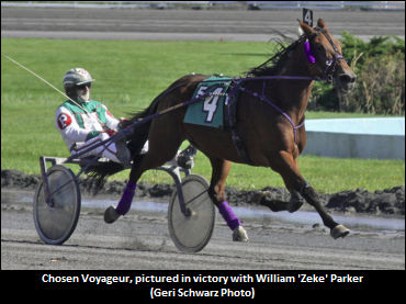 “He leaves like a pacer and loves to be on the lead,” said Parker, who has been Chosen Voyageur’s regular driver. “All of his wins this year have on the front-end.”