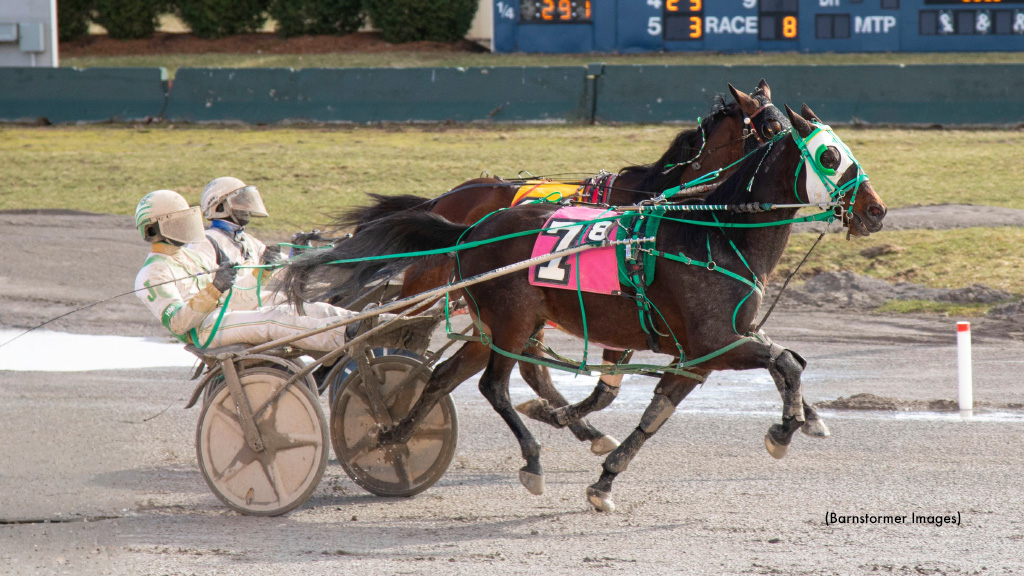 Carrythetorchman (Dan Yetman) set the early pace while searching for his fourth straight victory at Buffalo Raceway. With fractions of :29.1 and :59.2, Carrythetorchman found his win streak was in serious peril as he had company down the backstretch the last time, that being Panettone Hanover. From there, Panettone Hanover got comfortable, hitting the three-quarter marker in 1:29.1, but Villiam was winging it three wide and pulled alongside preparing for the stretch drive.