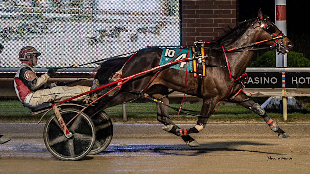 The daughter of Minnesota based stallion Karpathian Kid got away fifth in the early stages of her $12,329 conditioned race while Aint She Special (Luke Plano) and Townline Vickielou (Rick Magee) traded turns on the lead during the opening fractions of :28 and :56.3.