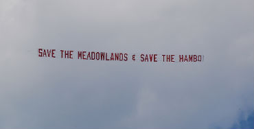 The red banner, pulled by the single-engine plane, read: Save the Meadowlands & Save the Hambo.