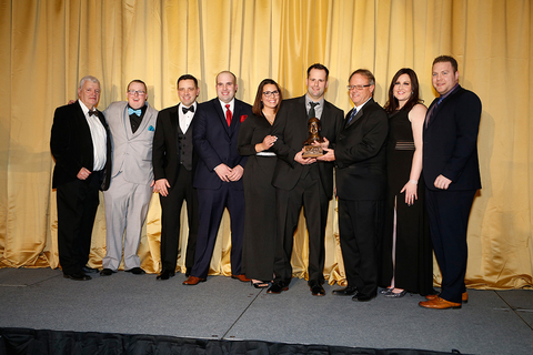 Jackson Wittup, Vice Chair of Standardbred Canada’s Board of Directors makes the presentation to Marc Campbell. Left to right: Fred MacDonald, Bo Ford, Damian MacInnis, Brent Campbell, Natasha Campbell, Marc Campbell, Jackson Wittup, Meghan MacDonald and Nolan Cornish.