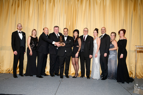 Standardbred Canada Director Kent Oakes makes the presentation to Alarm Detector’s connections. Left to right: Jeff Baillargeon, Jill Robertson, Tom Rankin, Kent Oakes, Santo Vena, Gabriella Vena, Ben Baillargeon, Sara Baillargeon, Nunzio Vena, Liz Vena and Guylaine Baillargeon