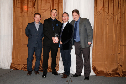 Bob McClure, finalist for Driver of the Year (second from left), makes the trophy presentation to Woodbine’s Broadcast Department. Left to right, Producer - Director, Kris Platts, (Bob McClure) Rob Platts and Phil McSween.