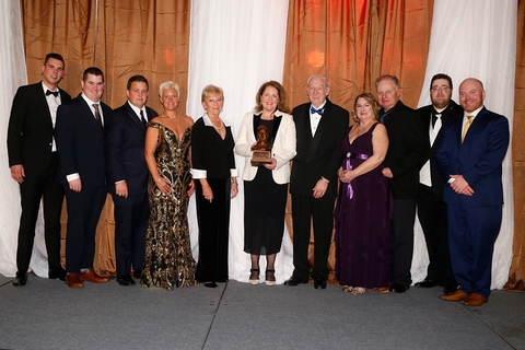 Left to right: Corey Johnson, Ben Hollingsworth, Mark Herlihy, Casie Coleman Herlihy, Linda James, Jessica Buckley, President of Woodbine Mohawk Park, Ed James, Linda Coleman, Phil Coleman, Tyler Schlatman, Mark MacKinnon.