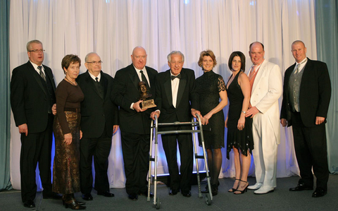 Sheryl Plouffe from the Weather Network makes the presentation. Left to right: Ray Johnston, Aline White, Jim Johnston, John Fielding, Irving Liverman, Sheryl Plouffe (presenter), Stephanie Corelli, Mario Glynn, Richard Strachan