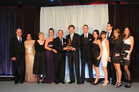 Left to right – Steve Labonte, Su Lalsingh, Marie Lavigne, Joyce Zeron, Rick Zeron, Nick Eaves, President and Chief Executive Officer of Woodbine Entertainment Group, (presenting) Scott Zeron, Jennifer Zeron, Jerrica Zeron, Jade Zeron, Emma Bayne, Jeff Chapman (behind)