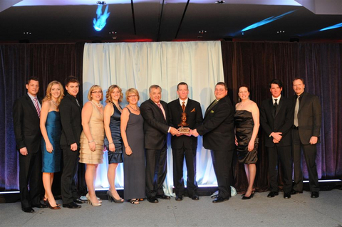 Making the presentation, Terry Lantz, Director of Racing and Race Secretary for Rideau Carleton Raceway. Accepting: John & Mary Lamers, Debra Lamers, Sandy Ashcroft, Jodie Warden, Pat & Karan Fletcher, Curtis Robinson, and Brent & Keegan Baulkham, and driver Randy Waples
