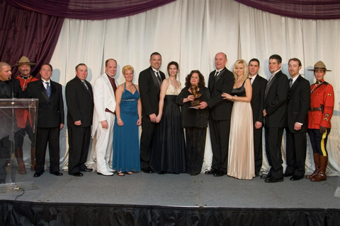 The elegant simplicity of Christine Calhoun’s (fifth from R) pleated empire gown is something to be celebrated. The pearl toned skirt and jeweled belt complimented by the edgy black bodice and chic gold bangles unites Victorian goddess with rock and roll chic for a captivating statement.