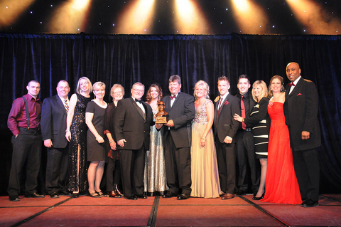 Vance Cameron, the voice of Island racing at Red Shores at Charlottetown and Summerside makes the presentation to Gregg McNair and the McNair entourage. (Left to right:) Todd Cantelon, Steve Surette, Louisa Smith, Tracey Neuman, Gwen McNair, Vance Cameron, Amy McNair, trainer Gregg McNair, Susan Knox, driver Doug McNair, Scott McNair, Cheryl Neuman, Lisa Mutter, & Chris Matthews.