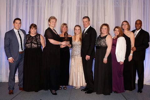 Standardbred Canada Track Director Morag Watt (third from left) makes the presentation to Lady Shadow’s connections. Left to right: Scott McNair, Christine Lawrence, Morag Watt, Connie Rankin, Abby Hope, Lindsey Rankin, Nancy O’Hagan, Amy McNair, Louisa Surette, Chris Matthews.