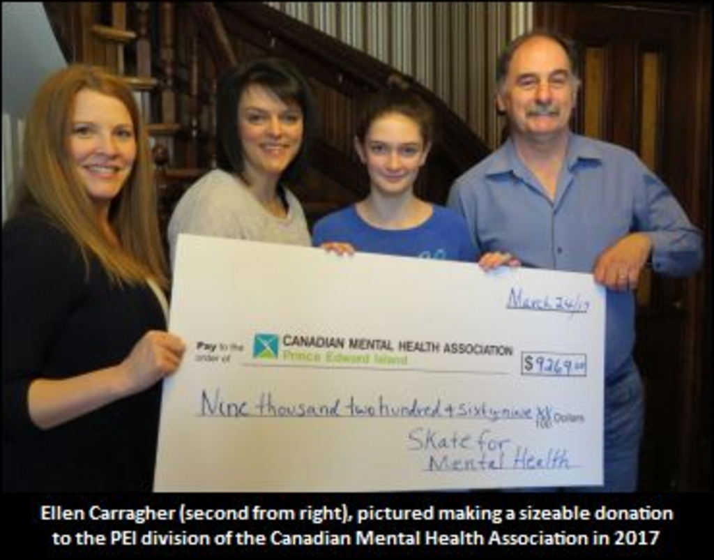 Ellen Carragher (second from right), pictured making a sizeable donation to the PEI division of the Canadian Mental Health Association in 2017