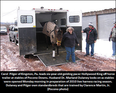 Pocono Downs welcomed the first arrival of horsemen and horses Monday, March 1, as the stables opened in preparation for the 2010 live harness racing season