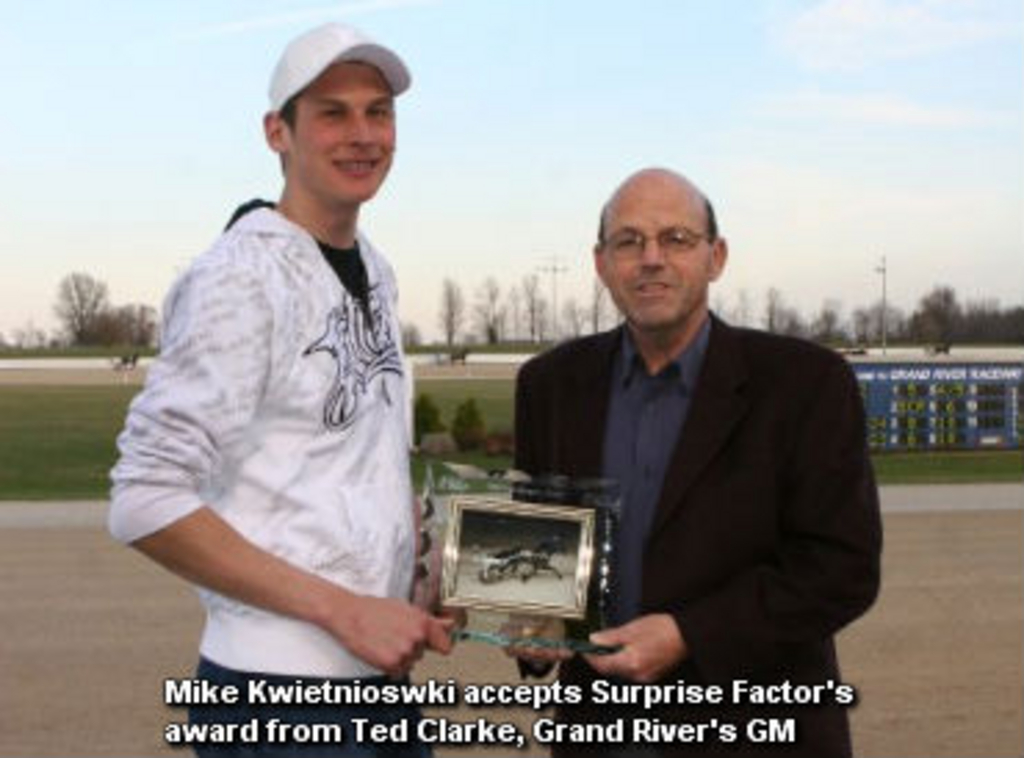 Grand River Raceway in Elora, Ontario recognized the recipients of its 2009 Top Performer Awards on Tuesday evening. The 13 award winners were presented with their hardware during the track’s race broadcast