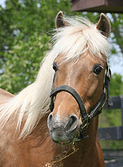 Trottingbreds were developed in the early 1960's by crossing ponies with Standardbreds. Most are one-half to seven-eighths Standardbreds and are officially recognized as a breed. To qualify for racing, Trottingbreds may not measure more than 51-1/2 inches (shod), or just under 13 hands. They typically race one-half mile and are classified by time. Trottingbreds can trot or pace and the HHYF Stable currently numbers five pacers and two trotters. Sweet Karen was prepared for her HHYF racing campaign by trainer Julie Miller.