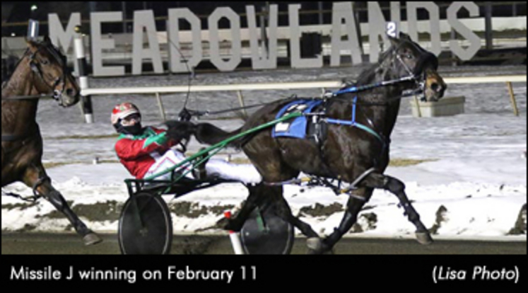 Stakes-Bound Missile J Wins Again February 12, 2017 The pace was slow and trip did not go as it was planned, but the result was the same as the past two weeks as Missile J led all the way to win his third straight in the $16,000 featured pace at The Me...