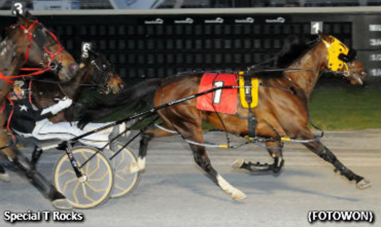 Special T Rocks Sizzles At Harrington May 22, 2017 Bill Sartin and Mark Salerno's Special T Rocks was a repeat winner in Monday's $17,500 Open at Harrington Raceway in 1:50.2 – the fastest mile of the season at Harrington - over a track rated ‘sloppy’...