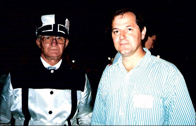 Ellis Dell left chats with SC Rewind's Robert Smith at the 1987 Dresden Reunion. Dell won an amazing nine races on the first two nights that races were held under the lights in 1966. He was one of the winningest drivers in the early years. Two sons Elwin and Allen were also horsemen.