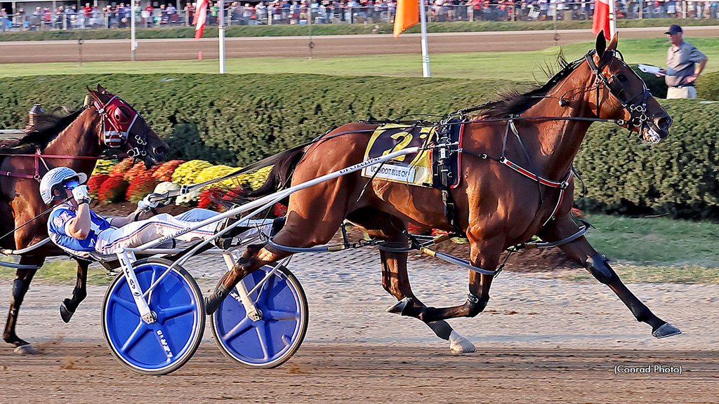 Following up her last-to-first 1:50.3 victory in her elimination earlier in the day, Ucandoit Blue Chip went right back out and delivered another winning performance in 1:50.2 to take the final just a few races later with Scott Zeron aboard for trainer Linda Toscano and owner Bill Elliott of Woodstock, Ont.